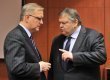 éen aux Affaires économiques Olli Rehn et le ministre grec des Finances Evangélos Vénizélos, le 9 février 2012 à Bruxelles (Photo : John Thys)...