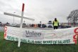 és du site Valéo de Mondeville près de Caen protestent le 26 mars 2009 à l'entrée du site (Photo : Mychèle Daniau) MONDEVILLE...