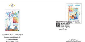 La Poste Tunisienne émet, le 4 novembre courant, un timbre-poste à l’occasion de l’accueil par la Tunisie du Congrès mondial de la Jeune Chambre...